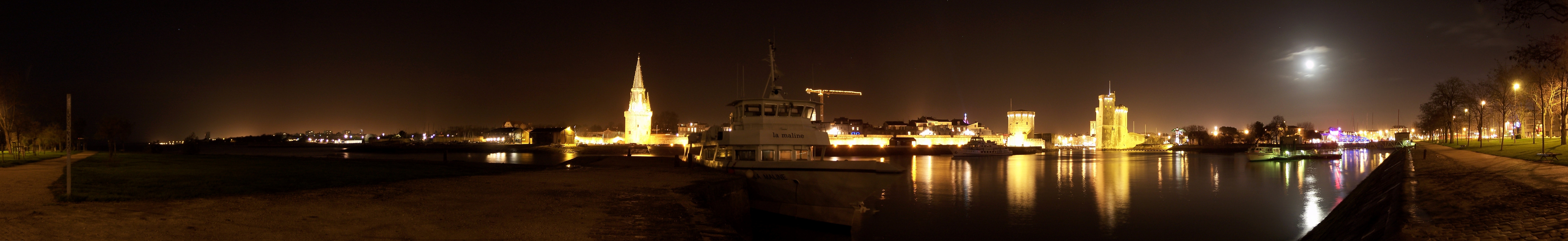 ملف:Panoramique des tours de La Rochelle de nuit.jpg
