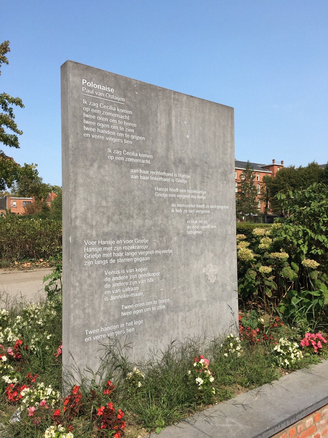 English: A stone slab with the “Polonaise” poem by Paul van Ostaijen. The reverse side of the stone has a different poem by the same author.