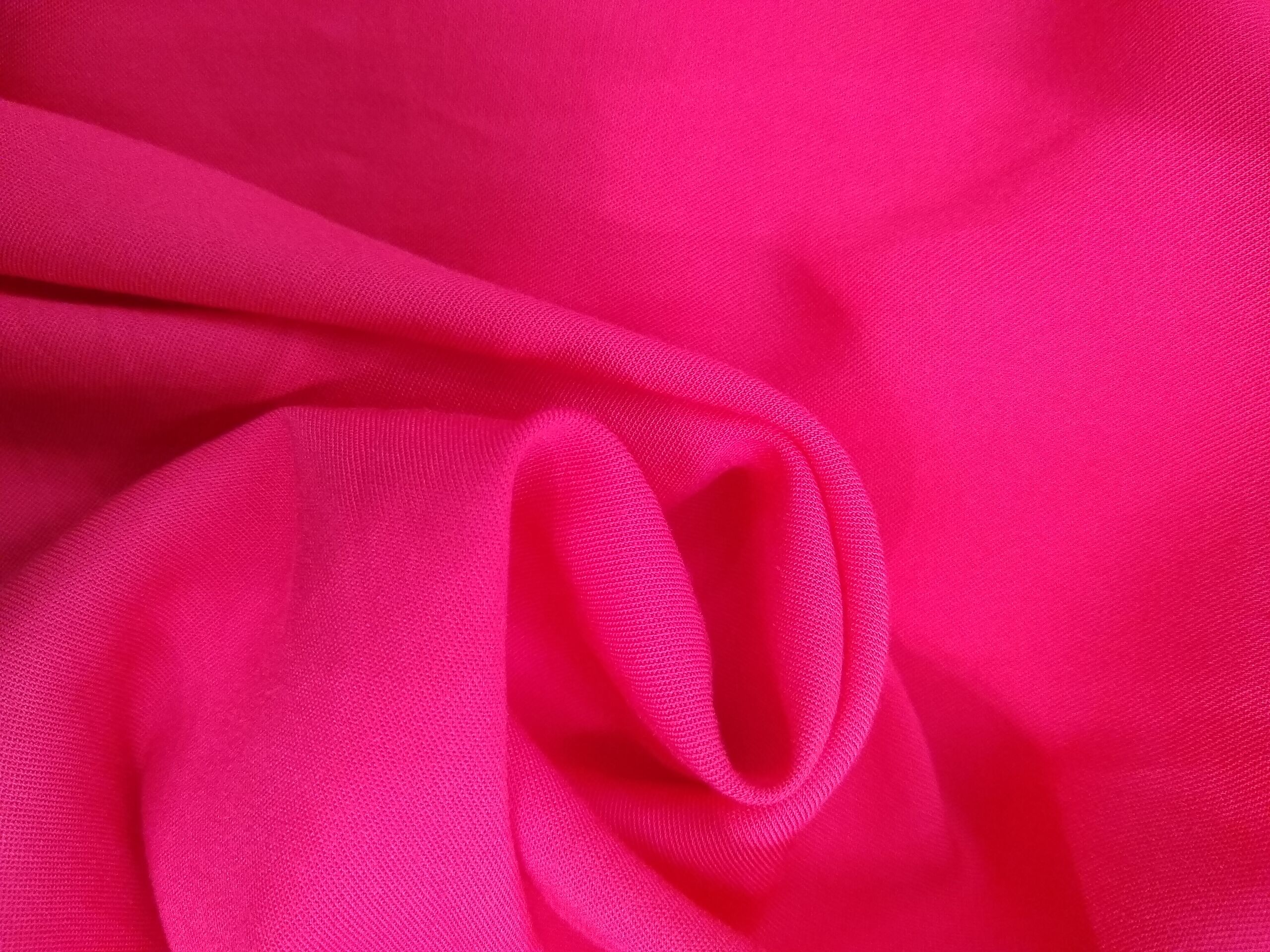 English: close-up of pink rayon challis fabric in a swirl to show drape