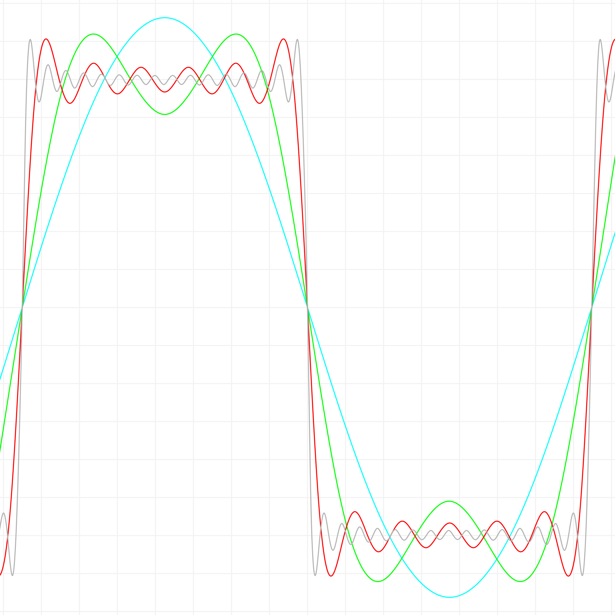 English: This picture illustrates a Fourier-Transformation of a square pulse. You can see the approximations: