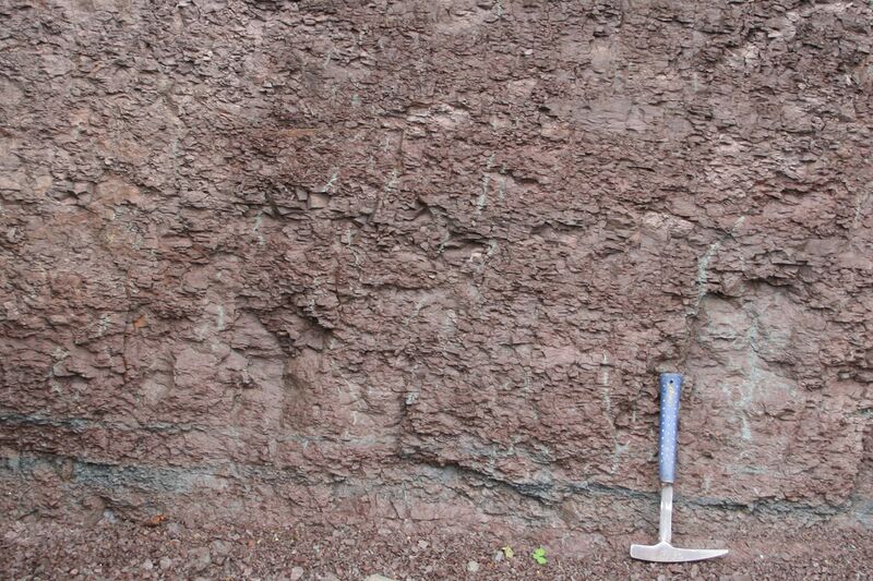 English: Red mudrock in the Ragged Reef Formation ( Pennsylvanian), Cumberland Basin, Nova Scotia