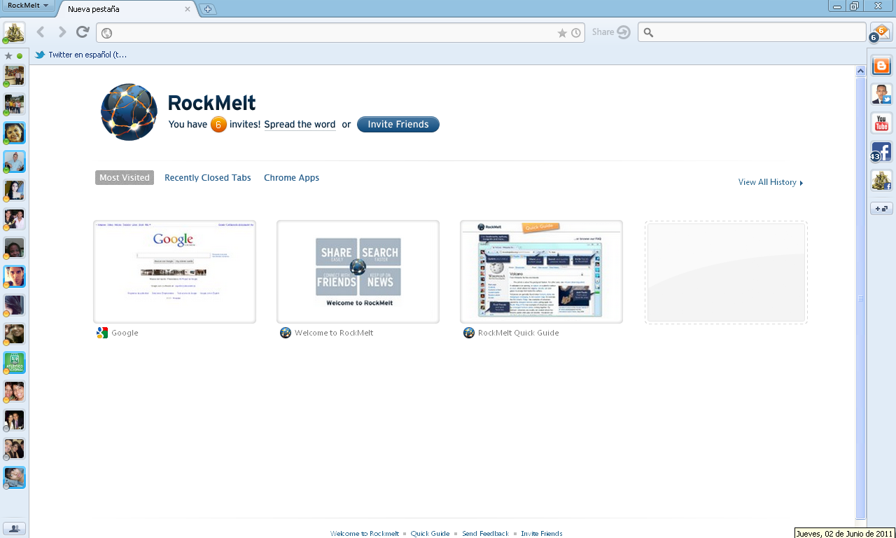 English: Rockmelt Screenshot capture Español: Captura de pantalla de navegador Rockmelt