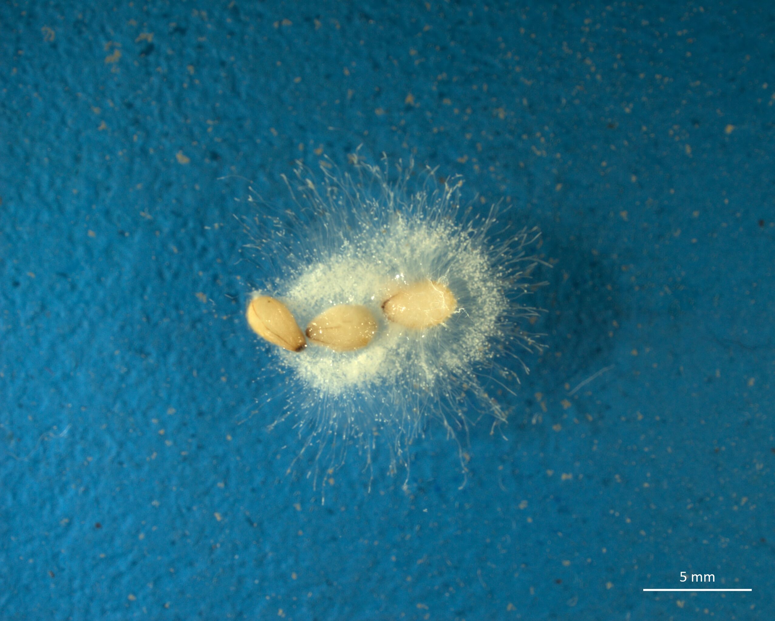 English: Saprolegnia (Oomycetes) on sesame seeds, in distilled water one week after inoculation with sample water from Bochumer Wald Lottental (Germany)