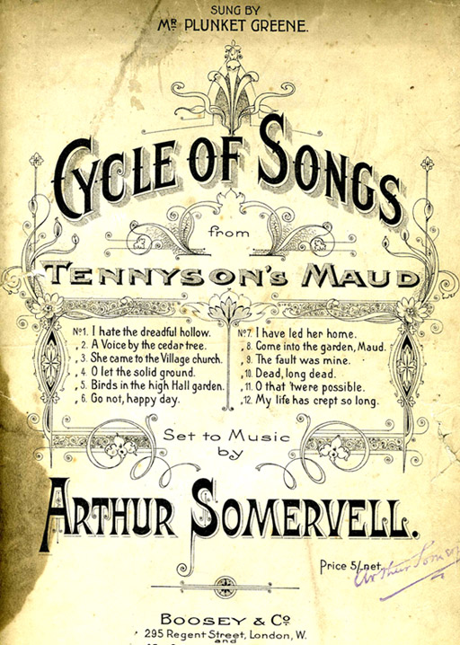 Title page of original edition of Arthur Somervell's Cycle of Songs from Tennyson's Maud. |