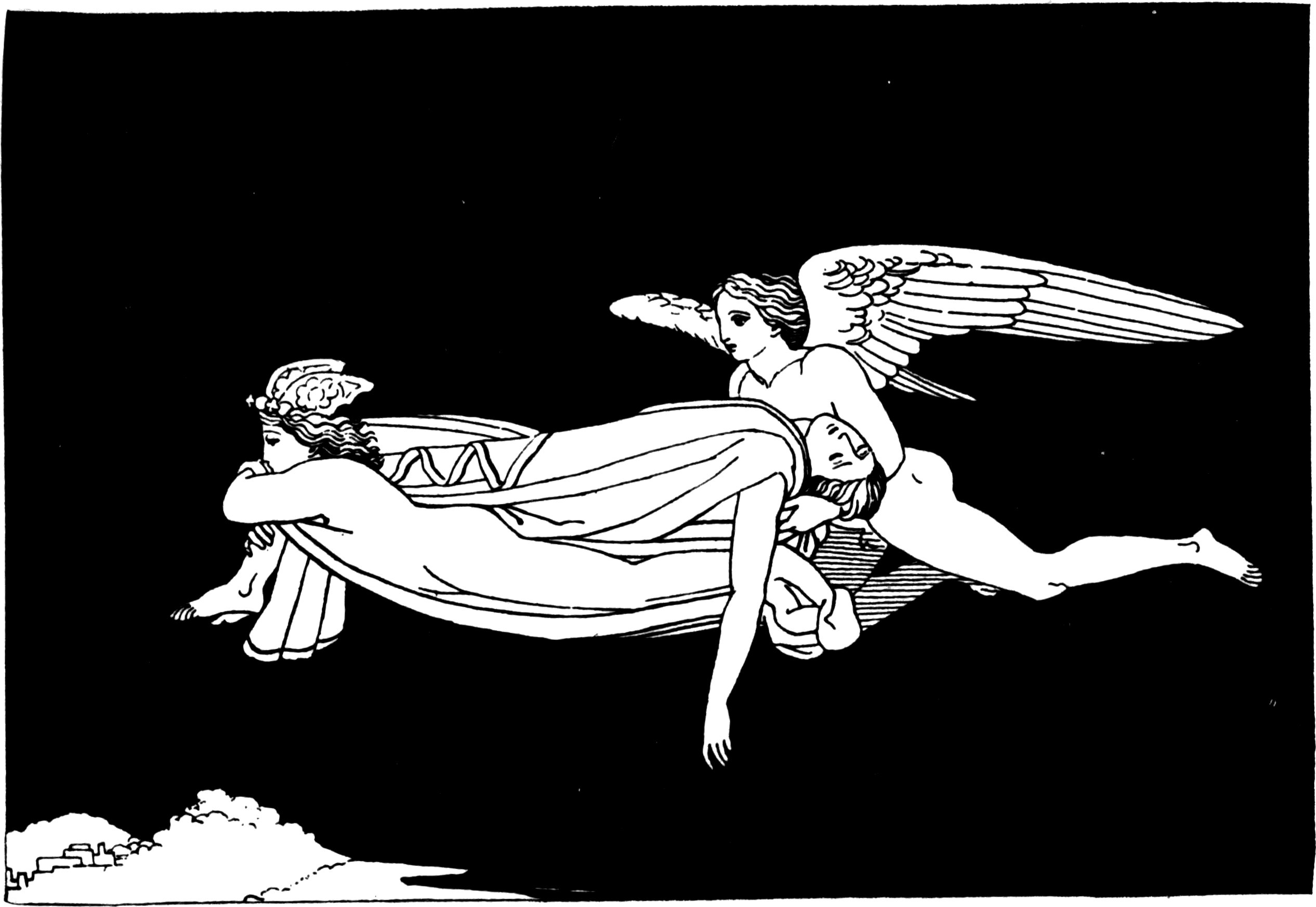 English: Sleep and Death conveying the body of Sarpedon to Lycia. from The story of the Iliad, 1892