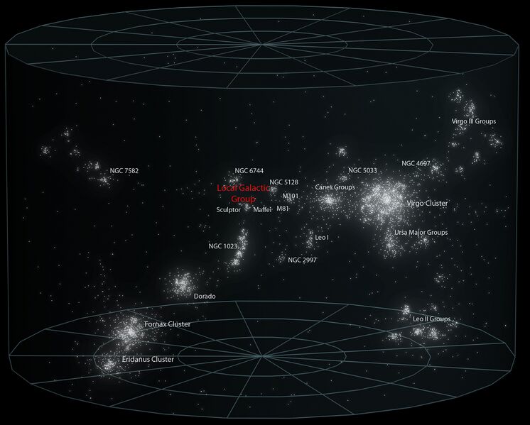 Español: Supercúmulo de Virgo, también conocido como supercúmulo local. en el se encuentran grupos y cúmulos de galaxias, entre ellos el Grupo Local.