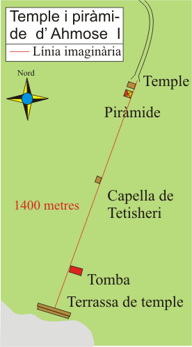 Temple d'Ahmose I, situació dels diferents elements, incloent la piràmide