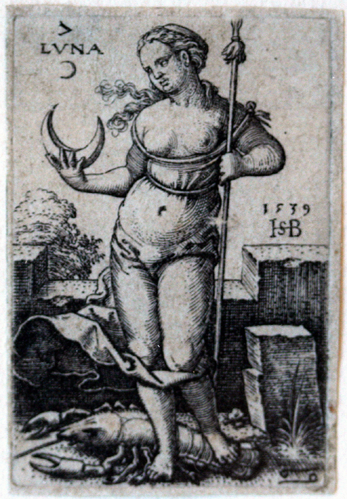 Beham, (Hans) Sebald (1500-1550): Luna, from The seven Planets with the Signs of the Zodiac, 1539 (Bartsch 120; Pauli, Holl. 122), first state of five, trimmed just outside the platemark, generally in very good condition. |