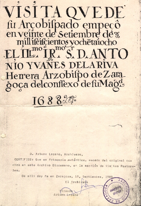 Visita del arzobispo Antonio Ibañes de la Riva Herrera al Arzobispado de Zaragoza |