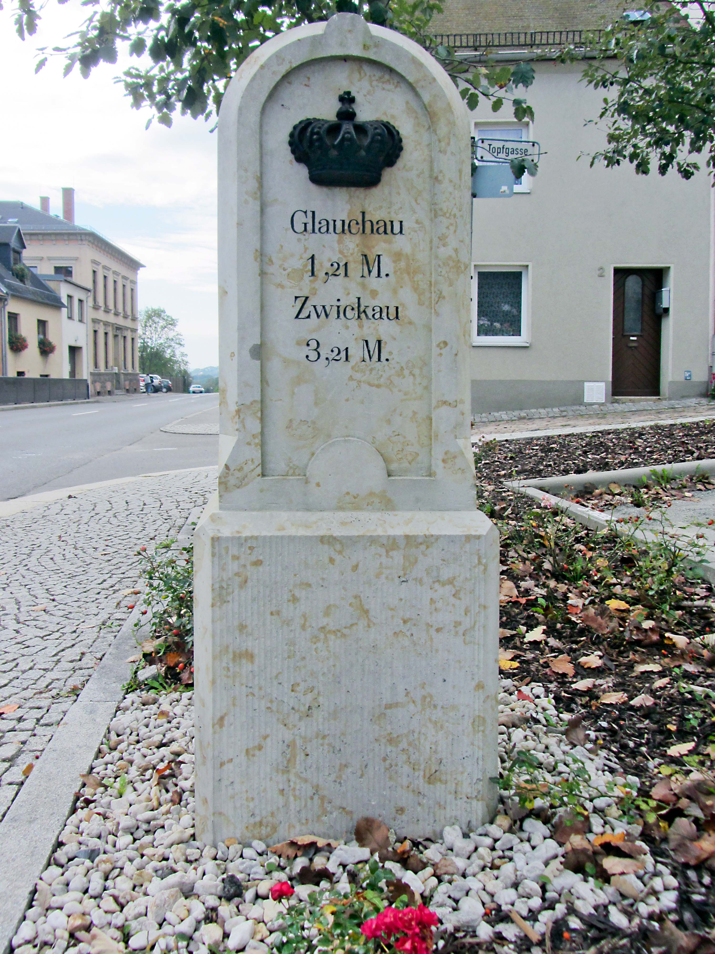 Deutsch: Königlich sächsischer Stationsstein, Glauchauer Straße [B 180] in Waldenburg