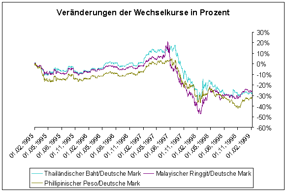 Exchange rate Asian Crises 97, prozentuale Veränderung zum Ausgangswert 01.02.1995 |
