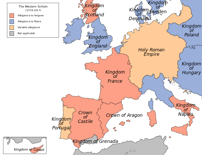 [This is a retouched picture, which means that it has been digitally altered from its original version. Modifications: Converted to SVG.. The original can be viewed here: Grand_schisme_1378-1417.png. Modifications made by Mipmapped.] Error: {{Lang}}: text has italic markup (help)