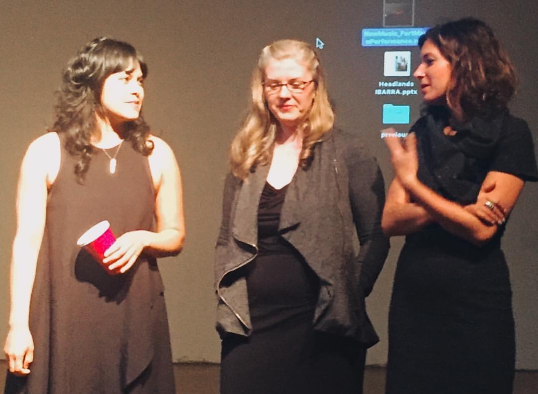 English: Left to right: Performance artist Xandra Ibarra, cultural anthropologist Adrian Van Allen, cognitive scientist Lera Boroditsky