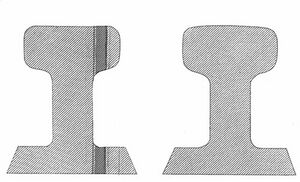 الشكل التقليدي من السكك الحديدية المجوفة هو قسم حماية العارضة الموضح على اليسار. هذه السكة هي شكل معدل من السكة ذات الجوانب وتتطلب تركيبًا خاصًا لنقل الوزن واستقرار القياس. إذا كان الوزن محمولًا بواسطة السطح السفلي للطريق، فإن هناك حاجة إلى روابط فولاذية بشكل منتظم للحفاظ على القياس. يتطلب تركيب هذه الروابط حفر السطح بالكامل وإعادة وضعه.