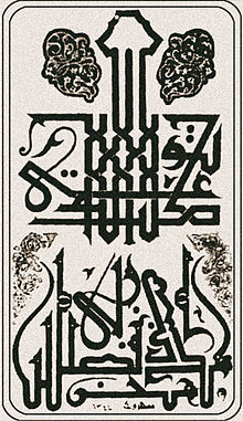 «توكلت على الله» و«هذا من فضل ربي» - لوحة بخط الكوفي للخطاط ممدوح الشريف نفذت عام ١٣٤٤ هـ.
