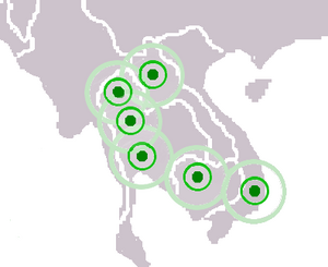 One of the earliest foreign sources to mention Xiān are the Đại Việt texts compiled during the reign of Lý Anh Tông, says merchants from Xiān Kingdom (暹羅) and others arrived at Hǎidōng (تشو هان: 海東) and requested permission to trade and set up a trading post at Yún tún (تشو هان: 雲屯) في 1149. Other requests for trade were sent في 1241. و 1360.[24] Xian also sent tributes to Đại Việt in 1182 و 1334.[25] في 1313–1315, Xiān attempted to annex Champa but failed due to the reinforcements from Đại Việt.[26][27] There was also a record of Siamese led by Passara, son of the king of Siam, settled in Java and established the city of Passaraan in 800.[28]