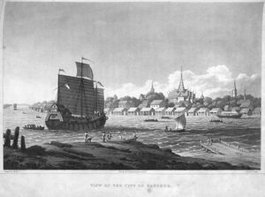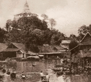 ![]() منظر بانكوك في القرن 19، ويظهر فيه الجبل الذهبي في الخلفية. |
