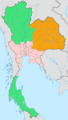 The Thai Meteorological Department divides the country into six regions for meteorological purposes.[2] It differs from the four-region system in that the east is regarded as a separate region, the south is divided into east and west coasts, and Nakhon Sawan and Uthai Thani are grouped in the central region.