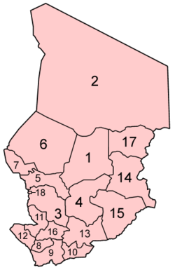 تنقسم تشاد إلى 23 منطقة region،[1]