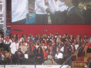 Oprah Winfrey with the Redeem Team at September 3 taping of season-opening September 8, 2008 Oprah Winfrey Show at the Jay Pritzker Pavilion
