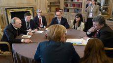 وأعلن الرئيس الروسي ڤلاديمير پوتن، في الساعة الثالثة من صباح الخميس 12 فبراير، أن "رباعية النورماندي" توصلت إلى اتفاق لتسوية الأزمة الأوكرانية بالطرق السلمية ينص على وقف إطلاق النار في شرق أوكرانيا ابتداء من يوم 15 فبراير.