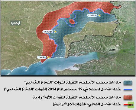- ^ "اتفاق وقف اطلاق النار في أوكرانيا يدخل حيز التنفيذ". روسيا اليوم. 2015-02-14.