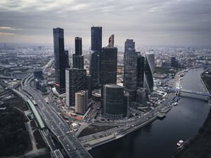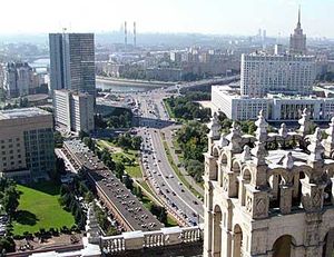 Red Square with the Spasskaya Tower (left), Saint Basil's Cathedral (right) and Ostankino Tower (background) View along the Moskva River with the Kremlin (right) and the Moscow International Business Center (left) | |