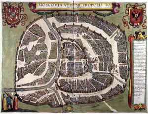 في القرنين 16 و 17، بـُنيت الدفاعات الدائرية الثلاث: كيتاي-گورود (Китай-город)، المدينة البيضاء (Белый город) والمدينة الترابية (Земляной город). إلا أنه في 1547، دمر حريقان معظم البلدة، وفي 1571 استولى تتار القرم على موسكو، وأحرقوا كل شيء عدا الكرملن.[12] وتسجل الحوليات أن فقط 30,000 شخص من أصل 200,000 ساكن قد نجوا.