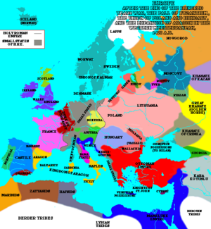 27. ^ أ ب Wickham, Chris (2016-10-15). Medieval Europe (in الإنجليزية). Ceredigion, Wales: Yale University Press. p. 265. ISBN 978-0-300-22221-0.