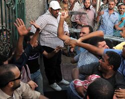 صورة للبلطجية أثناء اعتدائهم على المتظاهرين بالأسلحة البيضاء، ميدان العباسية.
