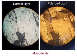 Molybdenite under normal and polarized light