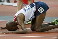 محمد فرح يسجد في الملعب بعد فوزه بذهبيةفي أولمبياد لندن 2012.
