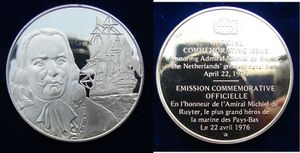 The Netherlands' Admiral M. de Ruyter on a medallion commemorating the 300th anniversary of his death after the Battle of Augusta