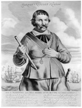 Arriving off Barbados in the Caribbean at the end of April 1665 aboard his flagship Spiegel (Mirror), he led his fleet of thirteen vessels into Carlisle Bay, exchanging fire with the English batteries and destroying many of the vessels anchored there.[6] Unable to silence the English guns and having sustained considerable damage to his vessels, he retired to French Martinique for repairs.