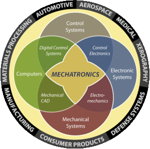 المصطلح ميكاترونس يستعمل للدلالة على حقل هندسي واسع و متشعب جدا، وهي الهندسة اللتي تجمع بين هندسة الميكانيكا وهندسة الكهرباء و هندسة الحاسوب وايضاً هندسة الإلكترونيات، و يتطور بصورة مذهلة من يوم إلى اخر. هذا المجال من الهندسة يتضمن تصميم اي منتوج (product) عمله يعتمد على دمج أنظمة ميكانيكية و الكترونية، يقوم بدور المنسق فيها منظومة تحكم (control system).