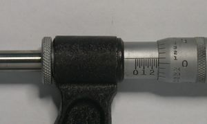 وهناك نوع شائع من الميكروميترات يُسمَّى المقياس الميكروي يستخدم لقياس سُمك الأجسام. ويتكون من محور ميكروي أو قلاووظ، يدور داخل صامولة مثبتة، ويغطيها قضيب. ويطبق المحور على الجسم المراد قياسه، من خلال تدوير جزء يدعى الحلقة المعدنية. ويقاس عدد الدورات التي تكونها الحلقة المعدنية بوساطة تدريجين، الأول مثبت على القضيب والآخر على الحلقة المعدنية. وفي الكثير من الميكروميترات المترية يدفع كل دورة للحلقة المعدنية المحور 0,5مم في الاتجاه الأفقي. وبإمكان الحلقة المعدنية تسجيل 1/50من 0,5 ملم، أو 0,01 ملم على التدريج الدائري.