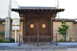 Yoritomo was the third son of Minamoto no Yoshitomo, heir of the Minamoto (Seiwa Genji) clan, and his official wife, Yura-Gozen, daughter of Fujiwara no Suenori, head of Atsuta Shrine and a member of the illustrious Fujiwara clan. Yoritomo was born in the family villa, on the western side of Atsuta Shrine, in Atsuta, Nagoya, Owari Province[3][4][5] (present-day Seigan-ji). At that time Yoritomo's grandfather Minamoto no Tameyoshi was the head of the Minamoto. Like Benkei, his childhood name was Oniwakamaru (鬼武丸). He was a descendant of Emperor Seiwa.[1]