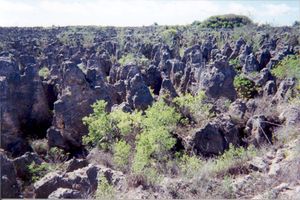 Limestone pinnacles remain after phosphate mining removed the guano.