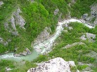 قبل - أخدود النرتڤا بالقرب من بلدة يابلانيتسا (حوالي 1920)، قبل زمن طويل من إنشاء سد گرابوڤيتسا.
