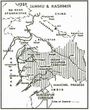 أصبحت كشمير محلا للنزاع بين الهند و پاكستان منذ تقسيم شبه القارة الهندية في 1947. وقد شنت الجارتان، وهما قوتان نوويتان في الوقت الحالي، الحرب مرتين حول إقليم كشمير ذي الأغلبية المسلمة البالغة 60% من سكان الإقليم. ويقسم الإقليم الجبلي بواسطة خط المراقبة الذي عادة ما ينتهكه المسلحين الانفصاليين. [1]