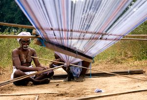 ينسج النسيج على النول، وهو آلة تضع خيوط السدى في وضعية محددة بحيث يمكن إدخال خيوط اللحمة خلالها.