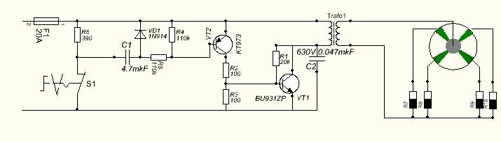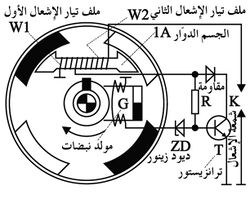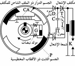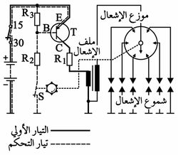 ـ وجود محول تحريضي transformer لرفع التوتر الأولي للنبضات الكهربائية إلى قيمة التوتر الثانوي العالي المطلوب لإطلاق الشرارة.