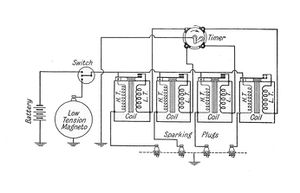 ـ تحقيق التماس بوجود مُقطِّع للتيار أو من دون مقطِّع للتيار، أي بوجود مولد نبضات pulse generator، من أجل ضمان نبضات التوتر الأولي بالمعدل المطلوب بحسب سرعة دوران المحرك وعدد أسطواناته.