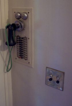 Loudaphone brand intercom station aboard RMS Queen Mary. The Loudaphone was specified for noisy environments such as aboard trains and trams and within a ship's engine room