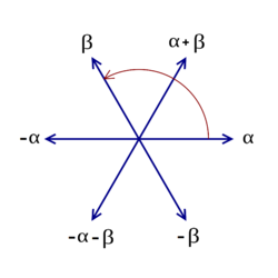 Let E be a finite-dimensional Euclidean vector space, with the standard Euclidean inner product denoted by . A root system in E is a finite set of non-zero vectors (called roots) that satisfy the following conditions:[2][3]