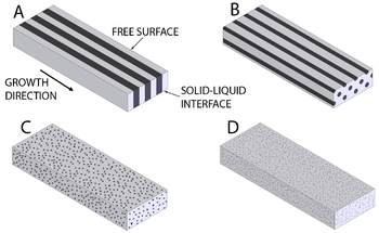 - صب السبائك، مثل الألومنيوم والسليكون والحديد الزهر (في تكوين لسهل الانصهار الأوستينيت-cementite في نظام الحديد والكربون).