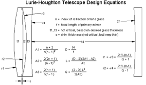 The Houghton telescope or Lurie–Houghton telescope is a design that uses a wide compound positive-negative lens over the entire front aperture to correct spherical aberration of the main mirror. If desired, the two corrector elements can be made with the same type of glass, since the Houghton corrector's chromatic aberration is minimal.
