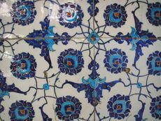 In visual art, pattern consists in regularity which in some way "organizes surfaces or structures in a consistent, regular manner." At its simplest, a pattern in art may be a geometric or other repeating shape in a painting, drawing, tapestry, ceramic tiling or carpet, but a pattern need not necessarily repeat exactly as long as it provides some form or organizing "skeleton" in the artwork.[18] In mathematics, a tessellation is the tiling of a plane using one or more geometric shapes (which mathematicians call tiles), with no overlaps and no gaps.[19]