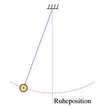 رسم متحرك لحركة البندول. نقطة السكون هي Ruheposition