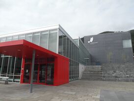 The building also houses a cinema, and a library and is connected to the local upper secondary school. The main stage is 14-متر (46 ft) wide, and 10 m (33 ft) deep, with a capacity of 530 seats. Of these, 218 seats are located in the gallery. When the orchestra pit is in use, capacity is 484. The chamber is specially constructed and adapted for acoustic music, using the same techniques as found in the Oslo Opera House.[26]